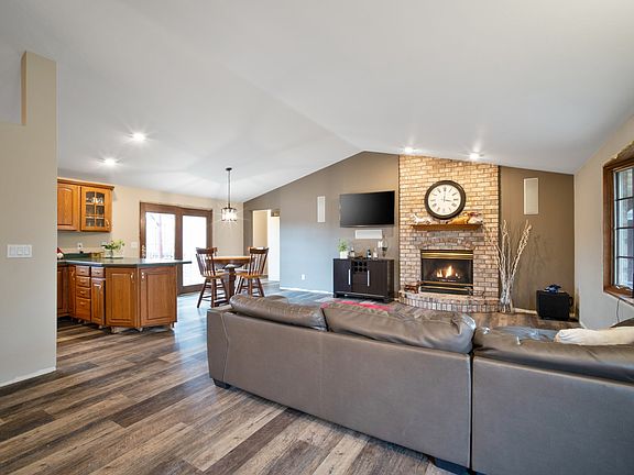 Finally, a country ranch with acreage and anoutbuilding for the toys! This 4 bedroom, 3 bathroom ranch has so much tooffer. From the vaulted ceilings & open concept to the finished basement.Features include a matching stainless steel appliance set, master suitew/vaulted ceiling, WIC & bathroom, gas fireplace, patio doors to a largedeck, rec room and family room in the lower level, newer flooring/bathroomfixtures/furnace/AC/water heater and more! Besides the 2.5 car attachedgarage you will find a large shop that is approx. 38x50, heated, has 220 andwater. The 2 acres offers a stamped concrete patio around the firepit, a largedeck, pond, chicken coup, smaller fencing for small dogs and great countryviews.