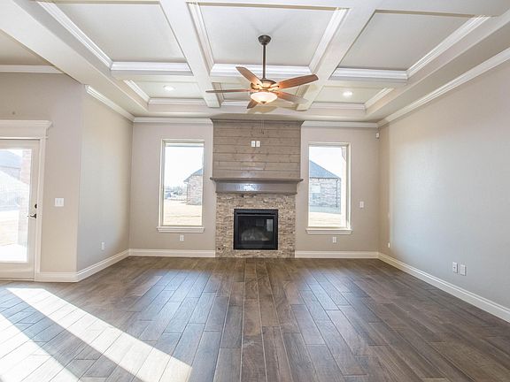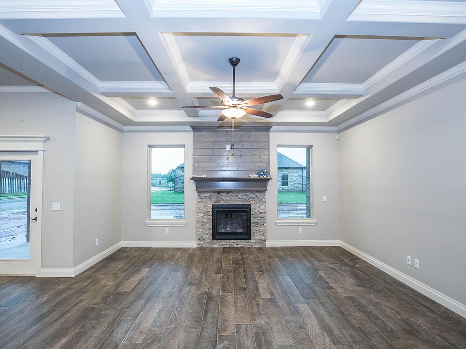 The Mallory BR plan is a total of 2600 SQFT & has 4 bedrooms with optional study, 3 full bathrooms with a 3 car garage, which includes a storm shelter. The property is fully sodded in the front & back yard with an underground sprinkler system as well as a relaxing outdoor fireplace. Kitchen has an island with stainless steel sink, decorative tile back splash, & a large walk in pantry. Living room has a gorgeous coffered ceiling, gas fireplace with beautiful shiplap surrounding, & is framed by 2 large windows, a custom barndoor separates the living area from the bedrooms. Main living areas have wood look tile! Master bedroom has a boxed ceiling with a master bathroom that features a walk in closet, dual sink vanities with 2cm exotic granite, Jetta Whirlpool tub and gorgeous walk-in shower. Other amenities include whole home air purification, Rinnai tankless heater, & R44 insulation.