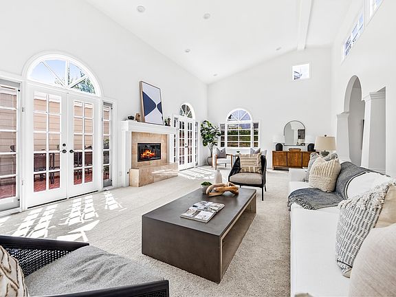 The rest of the home is equally impressive, boasting a quality of construction that speaks to the builder’s commitment to excellence. Flooded with natural light, the oversized living room features soaring vaulted ceilings with an adjacent dining room and access to the outdoors. The beautiful eat-in kitchen features custom wood cabinetry, granite countertops, and high-end stainless steel appliances. The breakfast nook completes the space and overlooks the sparkling pool and spa out back. Three additional bedrooms, two bathrooms (including one secondary en-suite), and laundry are positioned toward the back of the home.