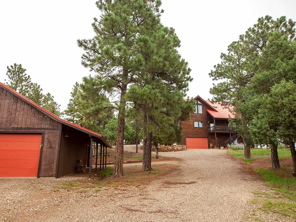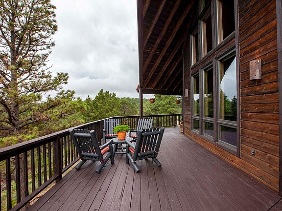 Take a Stroll Down Wildwood Lane... If a serene Lifestyle change or Rustic Second Home with Stunning Panoramic views and 35 Acres to enjoy is in your future....Call us now for your personal showing. This beautiful country cabin with 3336 sq feet of living space featuring 3 bedrooms and 2 1/2 bathrooms comes fully furnished. A 1200 sq foot wrap around deck highlights one of the most spectacular views in Santa Fe Trail Ranch. This property is elegant and comfortable and made to live and entertain in style. Features include: -Three level cedar sided Artisan Western designed home with additional cabin and approximately 1200 sq foot shop with loft and attached machine sheds. - 26 foot vaulted cathedral ceilings, knotty pine tongue and groove beamed ceilings.