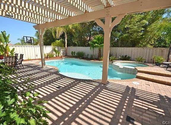 Wow! A beautiful, well maintained pool home ready for you now!! This 4 bedroom home plus office has wonderful upgrades inside and out. With wood or satillo tile floors throughout downstairs, the hard surfaces are easy to maintain and look fresh and open! With corian counters, tumbled stone backsplash, stainless steel appliances and the white cabinets...you feel like your in an upscale beach front estate! There is an office just off the kitchen with easy access to garage. With wood casings, wood built ins and designer paint...it just keeps getting better. How about the oustide you ask? Built in BBQ, fire pit, pool, peek a boo view, pavers, storage house (yes house! It looks just like the house!). There are beautiful gardens around the pool. Very easy to show and just waiting for you to make this your new home!!