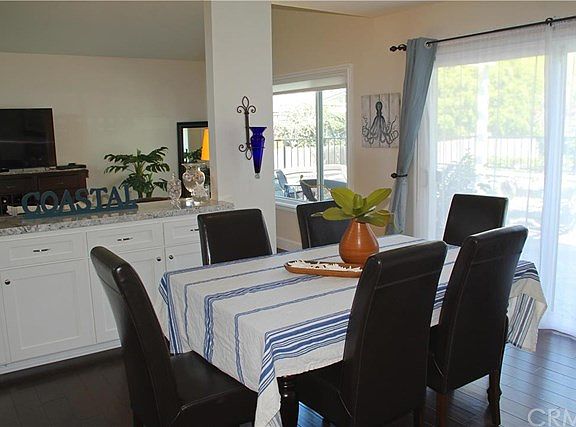 Charming 3 bedroom, 2.5 bath home in Mariner Village. Largest model in the tract, the Catalina. Spacious open floor plan designed for easy living. Downstairs living area features rich dark wood style flooring with contrasting tall crisp white baseboards. Open floor plan with living room adjacent separate dining room. Updated in todays popular style, the kitchen features stunning granite counters, white shaker style cabinetry, and recessed lighting. Kitchen opens to cozy family room making a great place for entertaining family and friends. Dual pane windows and slider. Upstairs master bath updated with granite counter and secondary bath features updated vanity and classic stone tiled shower. Property also includes A/C unit, not always the case in coastal properties. Large hardscaped back patio opens to greenbelt for an evening of relaxing. Or jump on the nearby bike trail and head to Dana Point to catch the sunset. This great community is just a couple miles from Dana Point Harbor and Doheny Beach. Enjoy the many outdoor activities of coastal living. Mariner Village offer a community pool/spa, tennis courts and for an additional monthly fee RV parking.