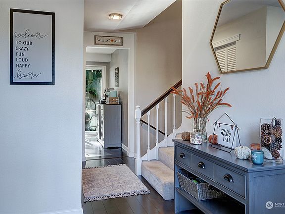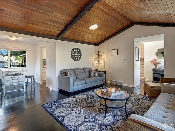 Fantastic, remodeled tri-level home near Silver Lake in the Eastmont area! You will love the stunning wood vaulted ceilings in the living room as you enter, formal dining room, remodeled kitchen w/white cabinetry (soft close doors), solid surface counters, tile backsplash + stainless steel appliances, slider to large private backyard w/patio (gazebo stays!), spacious upstairs primary bedroom w/attached full bath featuring tile tub/shower surround, 2 additional bedrooms w/adjustable closet organizers, full bath w/tile floors + newer vanity w/slab counters, lower level family room w/wet bar + cozy wood burning fireplace is perfect for entertaining + guests! BONUS: RV/boat parking! Close to parks, shopping, schools, bus stop + I-5!