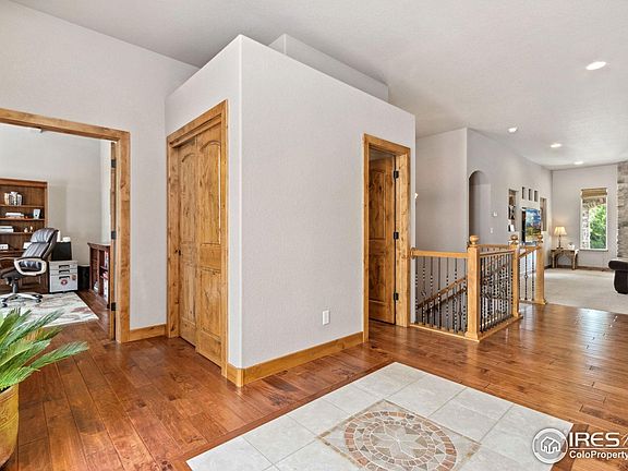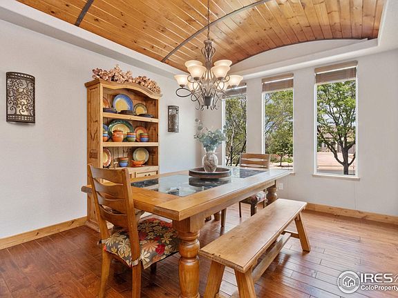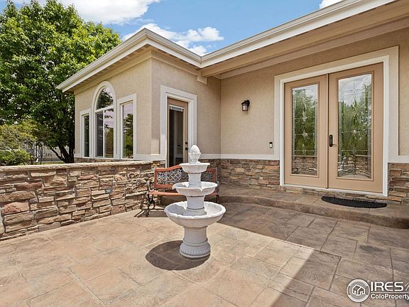 Welcome to a place where your heart truly belongs. Nestled on a.43-acre lot, this custom ranch-style residence crafted by Serenity Homes boasts exceptional craftsmanship and numerous thoughtful details throughout. The inviting courtyard offers stunning foothill views, while the extensive main-level features include maple hardwood flooring, knotty alder cabinets, solid pine doors, tile-inlay foyer, wood-wrapped barrel vault ceiling and coffered ceiling. The open floor plan encompasses a cozy living room with a double-sided fireplace, a gourmet kitchen equipped with a gas range, granite countertop, a walk-in pantry, and ample space for food preparation and entertaining. Highlights include two master suites on the main floor, a main floor study, a separate dining room and owner's suite with direct access to the patio. The finished basement features three additional bedrooms and 2 baths, a second gas fireplace, a spacious family room with a wet bar and a theater room ready for movie nights and perfect for hosting. Fully fenced yard with raised garden bed. The property also features a side-load three-car garage, a front porch, two back patios, and a combined basketball court and patio for outdoor enjoyment. Additionally, the home is equipped with a tankless water heater and radon mitigation for added safety. For an active lifestyle, you'll find miles of trails, access to Richard's Lake for boating and fishing, and a community pool and clubhouse right outside your door. With easy access to I-25, downtown Fort Collins, CSU, and the Fort Collins Country Club, this home offers the perfect blend of tranquility and convenience.