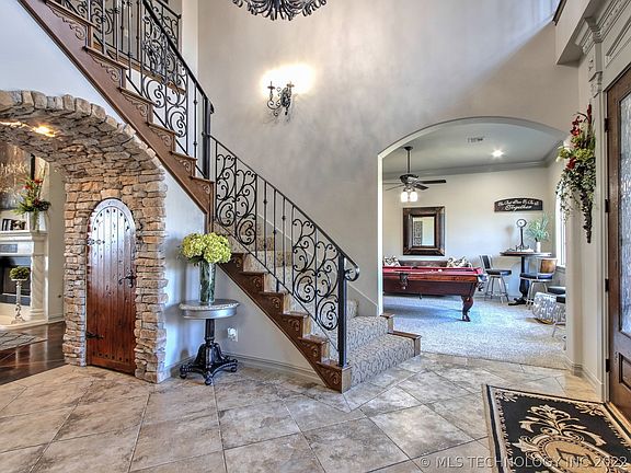 Stunning one-owner custom built home. Freshly painted & updated lighting throughout! Step into the gorgeous 18' entryway w/sweeping staircase w/hand-crafted wrought iron railing. Lower level game rm complete w/pool table. Living room features dramatic 18' ceiling, opens to inviting & accommodating kitchen w/built-in fridge & freezer & ice machine. Private 2nd bedroom & bath down. Music room (or 6th br) & 3 bedrms up. Sit outside under the arched patio w/something cold & enjoy the saltwater pool & hot tub.