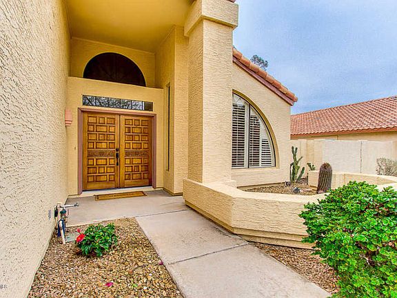 5 BR home with 3 car garage and pool for sale in Mountain Park Ranch Ahwatukee! This home features low maintenance desert front landscaping, vaulted ceilings, planation shutters, and designer paint. The open kitchen offers ample cabinet space, matching appliances, granite countertops, a pantry and a lovely breakfast bar. Master bedroom boasts granite countertops, upgraded full bath with his and her sinks, a separate tub and step-in glass shower, walk-in closet, and a balcony. The backyard is comprised of a grassy/gravel landscaping, covered patio, refreshing fenced-in pool, and paved seating area perfect for entertaining. Gorgeous mountain views from home, yard and neighborhood. Hiking/biking trails within walking distance. Close to restaurants shopping and award winning schools!