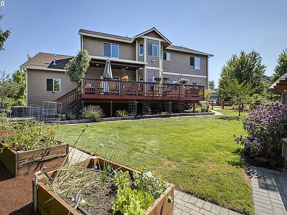 Well kept,clean,non-smoking home with flat driveway,rare three garage bays plus workshop,RV pad.Berries,grapes and fruit trees,the possibilities,Private,meticulously manicured yard with paver path,and in ground sprinkler.Raised garden beds and even chickens(if desired).Territorial views of the coastal range,New roof spring 2020 (transferable warranty),newer paint and siding. 2 mstr bedrooms,vaulted ceilings,walk in closets,large soaking tubs and separate showers.This is a must see.