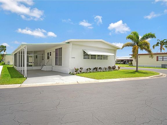 Turn Key Large 2 Bedroom, two bath double wide. 1152 SF under heat and air, A/C and hot heater are approx. 7 years old. Metal roof over. Located in Terra Siesta a 55 plus active community. Large rooms with eat in kitchen and formal dining. Newer sub-floor with elegant carved wood laminate flooring throughout. Carport has tandem parking for two vehicles. Very active community featuring two club houses, two pools, shuffleboard and pickle ball. Conveniently located near shopping, restaurants and pharmacy with easy access to I-75 and local beaches
