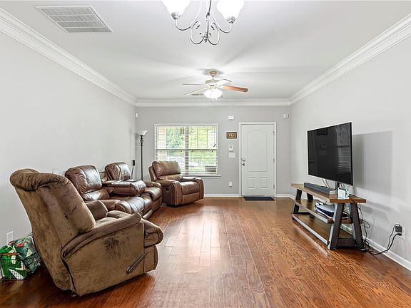 Welcome to this stunning one-level home in the desirable Piney Woods subdivision! The open floor plan seamlessly connects the kitchen to the great room. The kitchen features granite countertops, dark wood cabinets, and a bar top for casual dining. The master suite is bright and spacious, with an en suite bathroom featuring a soaking tub, shower, large walk-in closet, and a double vanity. Bedrooms 2 and 3 share a well-appointed bathroom. A large laundry room with shelving above the washer and dryer adds convenience. The back patio is perfect for entertaining and relaxation, overlooking a large fenced yard. Conveniently located near Auburn and Opelika shopping and dining. Don't miss out on this stunning property!