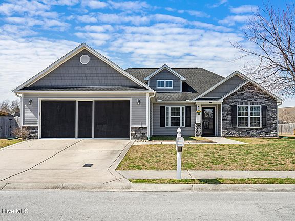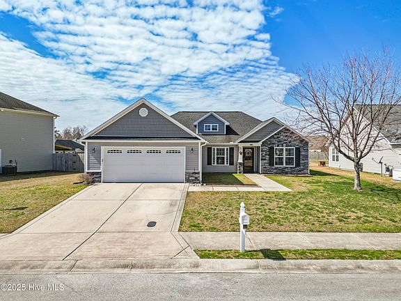 Make sure to put this one on your list to show! This truly Move in Ready, immaculate home in Hardee Farms is 1536 SF with 3 bedrooms, 2 bathrooms, and a 2-car attached garage. Hardee Farms is a natural gas community, built by A Sydes Construction. The home has recently added LVP flooring in the master bedroom and main living space; recently replaced appliances in the kitchen include the dishwasher, Convection stove/oven, and Microwave. The rear yard is fully fenced and tastefully landscaped with a gorgeous established lawn. The 2-car garage has been used as ''the front porch'' and has a pull-down full screen with an entry door. The entire garage has been painted and finished, including the floor. The garage storage cabinetry will convey with the home. Other features of the home include a tankless water heater, garage entry keypad, blinds and window treatments, and a glass storm door on front with a pull-down screen for this beautiful spring weather. Fiber Optic (Metronet) was installed for super-fast internet and streaming. The home is conveniently located between New Bern and Havelock and the Beaches of the Crystal Coast (33 miles). The home is just minutes from Grocery Stores, Golf Courses, Doctor's Offices, the Neuse and Trent Rivers and Historic Downtown New Bern. The commute to Cherry Point is just 15 miles, and the Croatan National Forest is 7 miles away. The home has been protected by a termite bond through Mays Exterminating, and an HVAC maintenance contract through Down East HVAC since the owner's purchase. HOA fee is $144 per year, and the community has sidewalks for getting your steps in!
