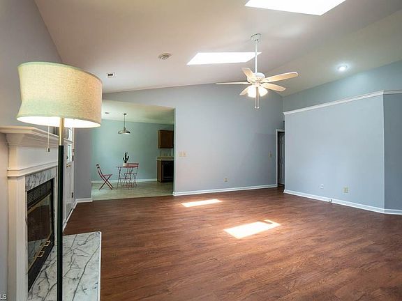 Great one level living in Kings Pond with a garage! 3 bedroom 2 bath with split bedroom plan. Spacious master bedroom and full bath w/garden tub and separate shower. New carpet in the other two bedrooms. Fresh interior paint. Open living room with fireplace and laminate hardwoods, eat-in kitchen with new stove, refrigerator, and microwave. Private fenced in backyard. All appliances included.