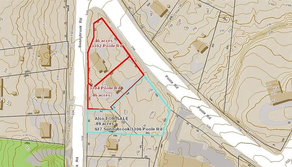 This listing is for 2 adjoining properties (3302 & 3304 Poole) owned by same person totaling .92 acres. Both pieces must go together. List price is for both properties and tax value shown is listing is for both properties combined. Contiguous properties located at 3306 Poole Rd. & 637 Sunnybrook Rd. MLS# 2146510 also for sale with V.G. Murray & Company for possible total of 1.81 acres. Zoning is NX-3-CU. Great location with access from Poole Rd and Sunnybrook! Both parcels contain rental properties.