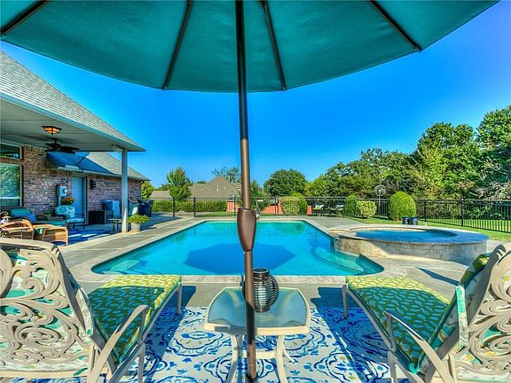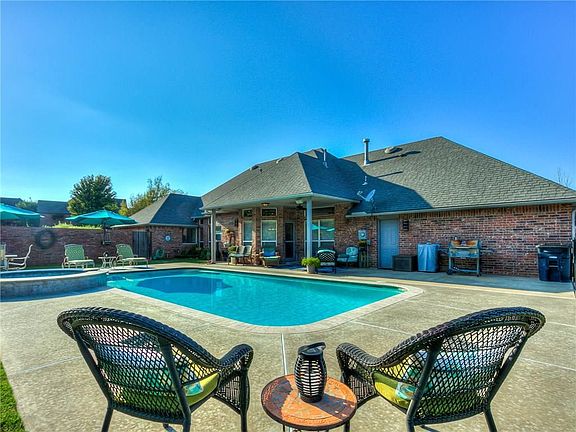 WOW... here's the home you've been waiting for! Open kitchen & family room w/Kenmore Elite appliances, huge island, 5 burner gas cook top, butler pantry, gas fireplace in family room. 4 huge bedrooms with mother in-law layout. Master suite w/ vaulted ceiling, jetted tub, huge shower, Australian walk around closet. Formal dinning & living rooms are light & bright. Out door living space includes, in-ground salt water pool, hot tub, fire pit, beautiful flower beds and amazing yard, storm shelter all on 1.66 acres. 3 car garage w/extra parking. Pool has heater and remote controls. Enjoy entertaining inside and out. Move in ready, spotlessly clean.