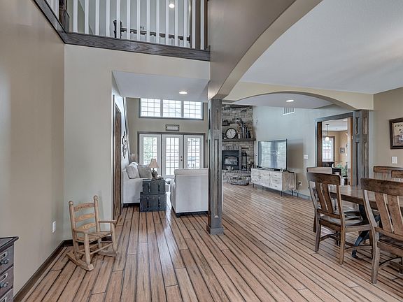 Nestled away in one of the nicest communities in Joplin, this magnificent 6 year old custom built 5 bed/4 bath luxury home invites you inside with an expansive open living space that features a beautiful 2-story brick and stone fireplace, custom wood flooring and trim, 18-foot walls and an abundance of natural light. The upscale kitchen boasts stylish custom cabinetry and granite, a large island, a gas range, a walk-in pantry, and a highly functional and attractive locker area. The master suite includes a large bedroom, his and her vanities, shower, tub and huge walk-in closet. Upstairs are four spacious bedrooms, a massive bonus room and two full bedrooms. The corner lot is adorned by exquisite landscaping and a custom built privacy fence. The property also features a tankless water heater, separate HVAC units for each floor and is located close to Joplin's best dining, shopping and healthcare venues. With a full price offer, the following amenities also convey: an elaborate security system with three cameras, two smart thermostats, washer and dryer, refrigerator and five storage cabinets in the garage. Owner/agent.