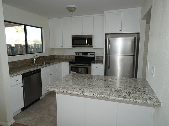 Own a home in Tucson within walking distance from a lake! The kitchen is remodeled with new white cabinets, granite counter tops and stainless steel appliances. This theme is continued into both full bathrooms that also have granite countertops, white cabinets and ceramic tile for the shower surround which matches the bathroom floor. The newly painted home also features wood flooring in all of the bedrooms. The great northern view over the wood fence in the backyard is of palm tress and the Catalina Mountains. Also located just over 500 feet away is a park whose main attribute is a lake! Don't miss your chance to own this tastefully updated home.