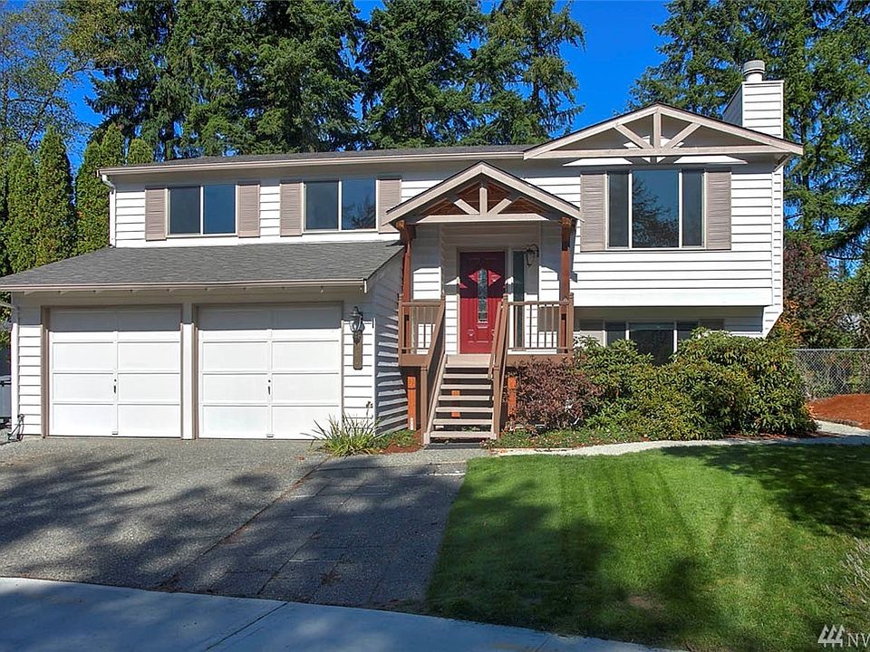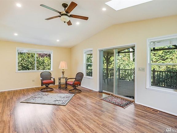 Lovely Tiffany Park updated home! Vaulted ceilings, new carpet, fresh paint & open floor plan.Dream Kitchen w/granite, SS appls & large breakfast bar. Open concept family rm w/skylights. Walk out to full length covered deck, protected from the weather for year-round use. Master w/updated ensuite bath. Large fmly room & guest room dwn. RV Pkng. Extra 3rd garage bay-perfect for car/motorcycle/toys/shop. Plumbed for W/D on both floors-ideal for extended living. Gorgeous yard. Across from huge park!