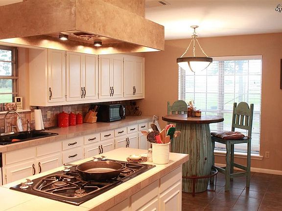 Country Living at its best. Living and dining room combo with tile floors and fireplace. Open & updated kitchen. Spacious bedrooms with double closets. Huge master with 4 closets and private bath. Possible 4th bedroom/2nd living area. Oversized 2 car garage. Gorgeous 5 acre property with large trees and beautiful views. Horse barn. Cattle facilities. New Cedar stave fence.