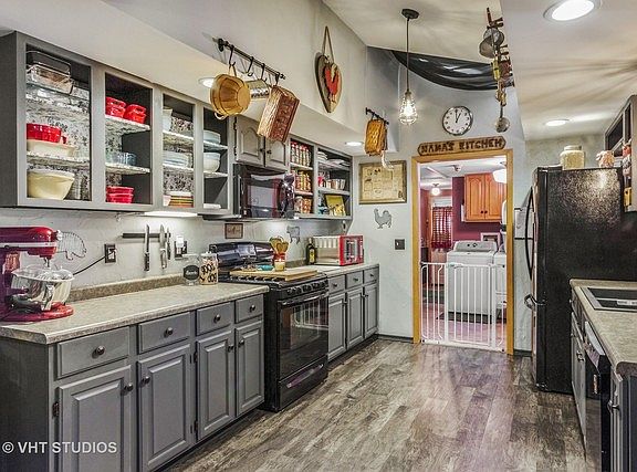 Beautiful 2300+ sq ft ranch! Gorgeous interior! Upgraded Kitchen new open style cabinets, pantry, new farmers sink! Huge Family Room, vaulted ceilings, fireplace, patio doors. Master Bedroom has cathedral ceilings, full wall of closets, private bath with skylight. 6 panel doors, zoned heating/cooling. Covered patio, fenced yard. Huge 4 car size heated garage with finished 22 x 15 kid/man cave including extra 1/2 bath. All appl 2013, roof 2011, 1 furnace/ca 2017. Hurry, this truly won't last!