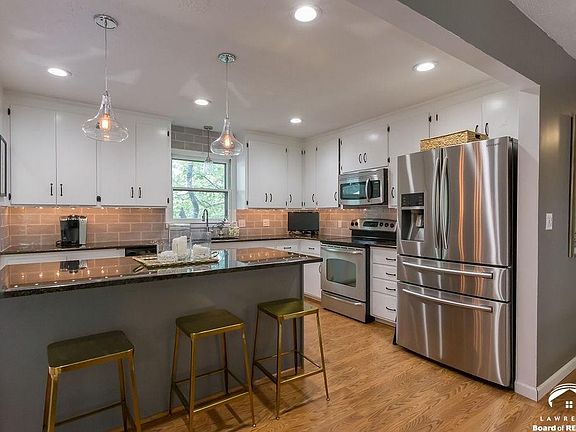 Check out this modernized gem! This impeccably maintained property has updates galore! Open concept remodeled kitchen (& baths plus so much more!!). No details left untouched. 4 Bedrooms!! Wonderful well established neighborhood close to schools and shopping in the heart of Lawrence. Great for entertaining complete with a wet bar in family room that walks out to the huge privacy fenced backyard, complete with a hot tub, garden, and firepit!