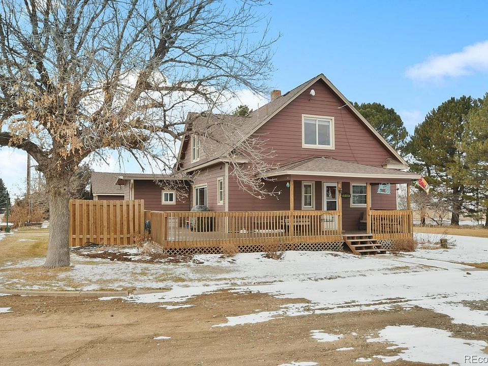 Country living 45 minutes from Downtown Denver. All the charm of the early 1900's with none of the work! Home features original floors, doors & hardware, trim, molded ceilings, arches. Lovely remodeled kitchen w/island, double oven, granite & more. Bedrooms on each floor, master has walk-in closet & beautiful updated bath. Cozy family room w/high-efficiency pellet stove. Home has humidifier, newer roof/siding. 40X60 equip bldg & 1296 sq ft insulated, heated shop- both with 10X14 doors PLUS a detached 2-car garage. Sprinkler & drip system, professionally landscaped, patio, deck, mountain & plains views. No HOA's or covenants! Bring your kids, critters and toys to enjoy peaceful country life. So much to offer! Come see for yourself!