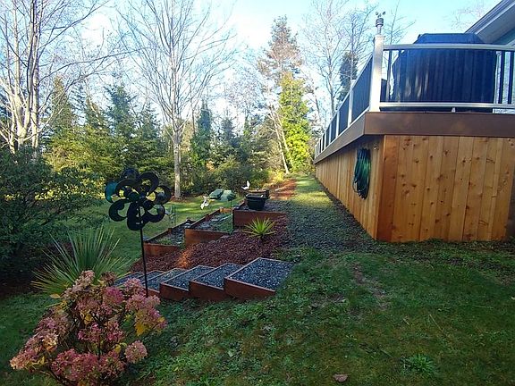 Private getaway to your remodeled 3 bed 2 bath home with ocean views. Extra deep garage. New oversized trex deck, granite countertops, faucents, bathroom fixtures, kitchen appliances, garage door and opener, windows, doors and siding on south and west side. New 8X10 Shed (see upgrades list) Terraced gardens, lots of trees and walking trails on lush green property. New Entertain guests on your new 12'X53' Pacific Ocean view deck and enjoy your evenings or sit inside by the fire. This is paradise!