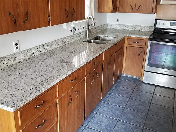 Brand new Granite installed in kitchen and new interior paint! Close to restaurants, schools and shopping! at 1,518 sq. ft. this home has 3 bedrooms, with 2 baths, a living room and a separate Den with fireplace and built in bookshelves, a nice size kitchen with a breakfast bar and dining room area, central heating/cooling, ceiling fans throughout, has 1 car garage, separate laundry room, fenced in back yard with double gate entry in rear, storage building and much more!
