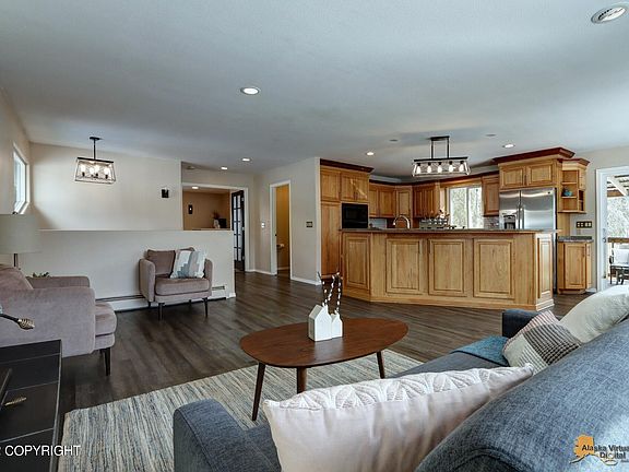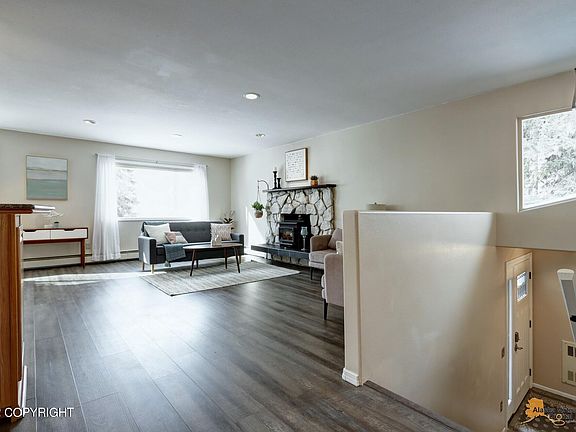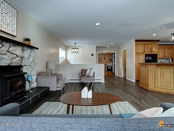 This is the home you've been waiting for! It is updated and modern, yet carries the classic air of being part an established neighborhood. The family room has a gas fireplace, and there's a wood stove insert in the living room. The huge master bedroom has its own private balcony over the back yard, and a private gas fireplace for cozy winter evenings. It also has a private master bathroom and....and 2 closets, the walk-in closet could easily double as a "cloffice" with its bright window space. The deck off the dining room is covered, and is therefore protected from the elements, and so much fun in the evenings with twinkle lights. The 2-car garage is extra large, with plenty of space for storage or a freezer. There is a huge 16x20 storage shed in the back yard. It even has its own deck. The whole house has been upgraded to be extra energy efficient and therefore stays very cozy and warm in the winter, and cool in the summer, while retaining low utility bills. Downstairs has an incredible space filled with custom office cabinets and built-ins that would be perfect for someone that works from home, or for homeschool organizing. It sits on an extra-large lot with Chester Creek at the edge of the back yard. The yard is full of mature landscaping such as trees and berries, as well as a new playground set. The interior has new LVP flooring, and the home is updated throughout. FROM THE SELLERS- WHAT WE LOVE ABOUT OUR HOME: "Moving into this home was an easy decision for us. We were drawn to the large, treed lot, beautiful office area, and proximity to parks and trails. Since moving in we have found much more to love. This neighborhood is warm and inviting. The large lot we fell in love with held delightful surprises for us; productive apple trees, mature raspberry bushes, currents, and gooseberries. Our summer evenings were filled with harvesting and jam making. We have enjoyed spending long beautiful Alaska evenings on the deck and winter evenings cozy by the wood stove. Having University Lake Dog Park and bike/ski trails only minutes away has enriched our lives. We love having the creek running through our property and being able to view the salmon, trout, and ducks who call it home. The trees around the home provide privacy and attract dozens of species of birds. Although the time has come for us to start the next phase in our lives this home will always hold a special place in our hearts."