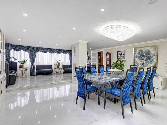 Rarely Offered.*Unique *Corner Unit,Tastefully Renovated Throughout,Panoramic Sunset View Around The Unit! **Over 3200 Sq. Ft.** Built By Tridel. Large Principal Rooms,Marble Floor Through Out. Family Room With Fireplace.More Than 100 Led Pot Lights, Modern, White, Eat-In Kitchen With Miele & Jennair Appliances,Custom Blinds.Built In Wall To Wall Closets In Master B.R Plus Custom Built Walk In Closet. 4 Underground Parking Space.