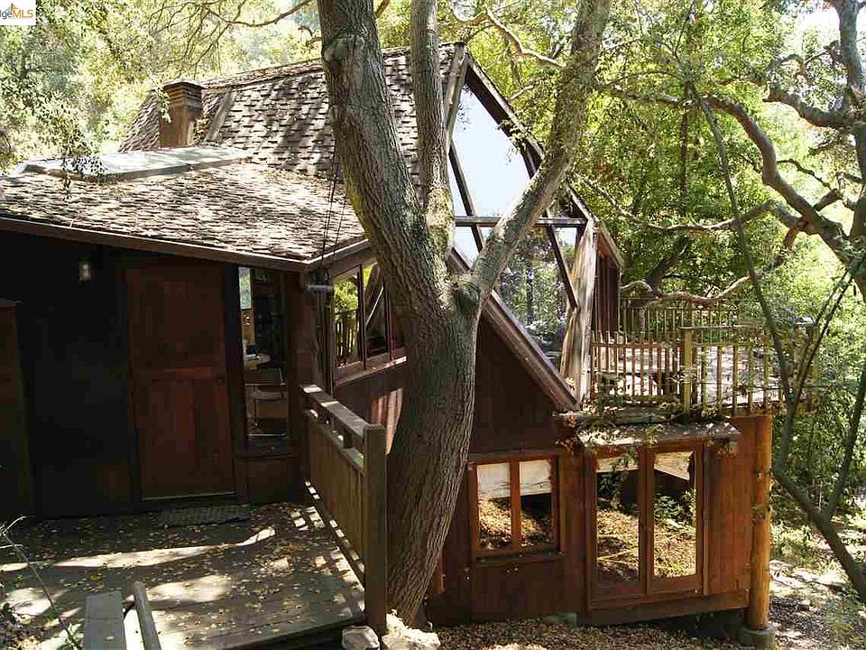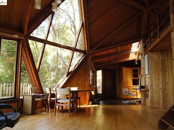 Price Reduced to $849,000 Tahoe in Berkeley! A John Coreris' amazingly unique Dome home. This secluded custom built two story home sits in the woods above Berkeley behind UC Stadium. An awesome space with soaring ceilings, exquisitely fine wood work, large deck overlooking woods and city below. Two master suites, laundry area, and mezzanine. Solid house in magical setting awaits your love. Transparent Pricing Available 10/04; open house Sunday 10/07