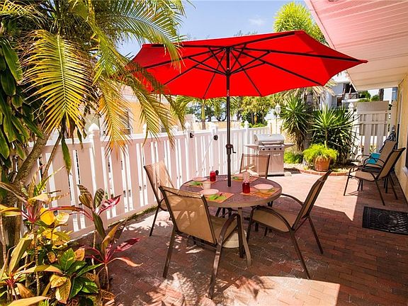 This totally updated, ground level, 2 bed, 1 bath condo is located on a very quiet and desirable part of Gulf Drive, across the street, just 100 steps, from the Gulf of Mexico! The gorgeous beaches of Anna Maria await! This pristine unit is offered turnkey furnished, and was renovated like new in 2015, including new 100 amp electrical service, all new wiring in kitchen and baths, and all plumbing new, changed and updated. All impact/hurricane exterior doors and windows. Kitchen has granite counters and SOLID WOOD cabinets, electric cooktop, dishwasher, microwave/convection oven vented to the outside, and new garbage disposal installed in 2018. Bath was completely remodeled, including beautifully tiled shower, and new stacked washer/dryer. All interior doors and trim were upgraded in 2015, including crown molding. Kitchen and bath have new 18"x18" diagonal tile, bedrooms have 18"x18" tile, as well. Living room has engineered hardwood floor. 12' x 26' PRIVATE FRONT PATIO with gas grill. Private back patio has 2' x 4' x 6' private storage unit for owner's use. The community has a stunning pool, and laundry facility, as well as picnic table areas. Make this your beach house getaway and love island vacation living!