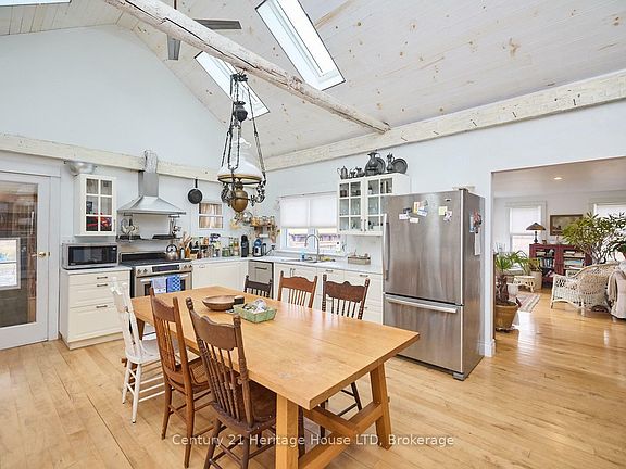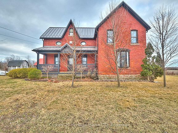 Nestled in the charming Hamlet of Gasline just outside the quaint town Port Colborne, you will find the stunning red brick farmhouse of your dreams. Constructed in 1903, this enchanting home boasts exceptional exposed brick, vaulted ceilings featuring exposed beams, hardwood floors, and an undeniable charm throughout. It beautifully blends cherished character with contemporary upgrades. In 2016, extensive renovations were completed to enhance vital components, including a steel roof, septic system, kitchen, electrical systems, plumbing, air conditioning, on-demand hot water, a high-efficiency furnace, two gas fireplaces, and most windows. The main floor offers a large bright eat-in kitchen with tons of storage space, laundry facilities and remote-controlled skylights. A spacious central room ideal for diverse uses, such as a family room or a home office, an ample sized main floor bedroom, 3pc bathroom that features a large soapstone sink and a cozy den that opens up to the living room with garden doors. On the upper level, there is plenty of storage available in the loft, along with a 3pc bathroom, a bedroom, and the primary suite. This primary suite features vaulted ceilings, exposed beams, a warm gas fireplace, and a private 3pc ensuite. Situated on nearly 2.48-acres, this home offers plenty of natural light throughout the interior, spacious outdoor garden spaces, and various outbuildings, including a converted 1,500 sq. ft. barn now functioning as a garage. Its prime location offers easy access to Cedar Bay Beach and Sherkston Shores, and is just a quick drive to Port Colborne, Fort Erie, and Niagara Falls.