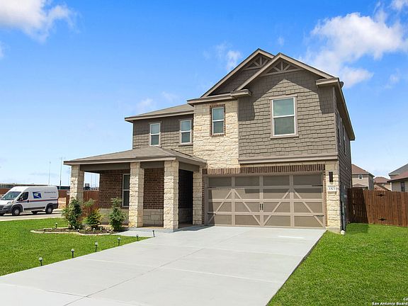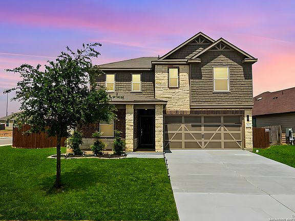 Stunning beautiful home with stone/brick elevation, a welcoming front porch, on a large corner lot (.24 of acre) cul de sac that is move in ready!!! Floorplan features a downstairs study/office, large entry hall that opens up to a bright family area and kitchen. New laminate flooring & tiled flooring downstairs. Kitchen has stainless steel appliances, double oven, tiled backsplash & granite counters. Master bedroom is large with full bath having double vanity, & tiled shower. Upstairs also features game room and good size secondary bedrooms. More updates/upgrades include new paint, blinds throughout, garage floor painted, new faucets, & LED lighting. Large backyard perfect for entertaining or relaxing with a recently stained deck and a above ground pool with new liner, & filter. Exterior has beautiful landscaping!! Close proximity to highways, Randolph Air Force Base, Joint Base San Antonio, The Forum Shopping Center, and downtown San Antonio. Schedule a viewing today and see all that this home has to offer!