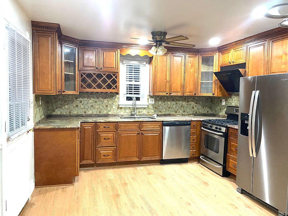 4 bedroom 2 full bath , finished walk out basement new renovated single house, stainless steel appliances granite countertops , front and back porch fenced yard washer and dryer . New central AC.