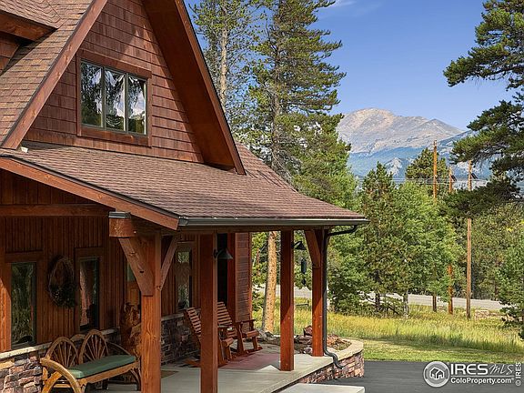 Sitting beneath Rams Horn Mountain in a private location framed by Aspen and Evergreens, this exquisite luxury mountain home will take your breath away! This timber frame masterpiece will be sure to impress the buyer seeking the ultimate getaway in the mountains whether it be for weekend or a lifetime! With the rare combination of privacy among the trees, big views of snow capped peaks, and bordering public land, this home is one-of-a-kind! Featuring an efficient floor plan without too much to clean, this home is just the right size! Immediately upon entry, the timber frame hand-hewn beams and massive fireplace make a lasting impression that you are entering the mountain cabin of your dreams! The main-level primary bedroom suite will become your sanctuary with a soaking tub, his and her closets, and surrounded by Aspen trees just outside the windows. Upstairs features 2 guest rooms, a full bath and a gigantic loft for flexible uses including hobbies, crafts, movies, home-office, or extra sleeping space for guests. The kitchen features locally-sourced Masonville sandstone counters, hickory cabinetry and attractive appliances with a gunmetal finish. Outside, the massive covered patio will help you enjoy the best that Estes Park summers have to offer as the wildlife passes through the Aspen grove below. This special property is positioned conveniently between RMNP and the YMCA of the Rockies in the Thunder Mountain subdivision and within a 2 mile hike of Sprague Lake, one of the most photographed scenic mountain lakes in all of Colorado!