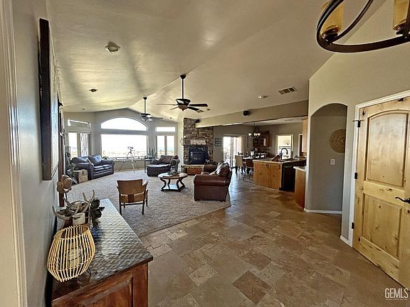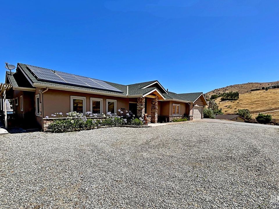 Set atop a hill amongst the clouds where eagles soar with million-dollar views. Nothing was spared in this custom build. Built with intent and function for those expecting luxury & comfort with views from every room. Open that artistic glass Sun entry door for the spectacular lake view. Inside warm up to the floor to ceiling stone fireplace, knotty Alder custom doors. Chef's kitchen including island with storage, granite counters, commercial Viking stove, pot filler, copper sink. Home features primary bedroom with ensuite bath with 2-sided fireplace, Bidet, walkin shower and jetted spa tub, toe warmers. Primary bedroom has fireplace, sitting area and custom closet organizer. Two large bedrooms, one without closet plus office/ workout room. Don't forget PAID solar, 2 tankless water heaters, attic storage. 3 car garage with one side load, RV barn, boat barn and shed to store those toys & more!! This is a must see!