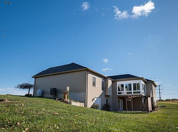 Custom Brick Stone Ranch on 4 Acres in R7 schools. 7' leaded glass door greets you as you enter the 9' main floor. Special mill work Double tray ceiling in the great room, columns & arch ways separate the formal dining room. Luxury Vinyl tile & plank laminate through the main floor. Tv & surround sound in great room & glassed enclosed backporch will stay. Huge Kitchen with Granite counter tops, Stainless refrigerator, Wine chiller, Composite double bowl under mount sink & bar sink & double door pantry makes this a dream of a kitchen. Split flr plan offers privacy for all. 2nd & 3rd bed rooms with ceiling fans & double door spacious closet separated with full bath and Adult height vanity. 15x16 Master suite offers tray ceiling with ceiling fan. Spacious Master bath with Adult height double bowl vanity, jet tub and 4 ft shower/ glass enclosure. 2 walk in closets & separate toilet area. MF laundry rm with additional cabinets,W/D will stay. 9'pour wo basement french & double door to patio