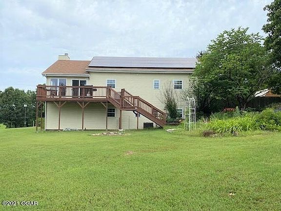 Enjoy drive up hill on paved drive to home with privacy and wonder views all directions. Four bedroom 2 1/2 bath home with walk out basement on5 acres. You will love the low utility bills with additional insulation and solar panels All electric home with average electric $45.09. Storage Building and garden area. Large bonus attic space access with from home. Updated kitchen with granite counter tops.