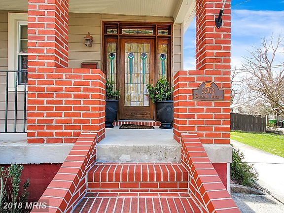Gracious Living in Greater Lauraville. Magnificent home w/antique stained glass doorway welcomes you. Hardwd flrs thru-out, SS Appl & Granite in KIT, Stone FP in FamRm, & Hand Crafted Built-ins in LivRm all add to the charm. Level 2 has 2 BedRms incl Master w/amazing bath. Level 3 incl 2 BedRms & storage area. LL w/great workshop & laundry w/dog bath. Dual HVAC & Landscaped w/Pergola & gardens.