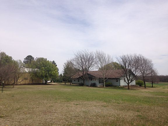 Main floor 1960 square feet includes open great room with kitchen, breakfast nook, dining, and living areas, 2 bedrooms and 2 bathrooms, oversized laundry room with lots of storage. Sunroom addition. Basement (1624 sq ft) includes 2 bedrooms, 1 bath, large family room (26x26), and storm shelter. Septic, rural water to house, well water for outside, propane, water softener system. 2 car oversized attached garage. Fruit trees, garden plot, underground dog fence. Insulated 36x50 machine shed with concrete floor. Harvey County.
