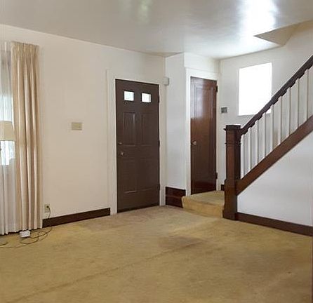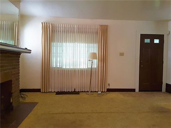 Hardwood floors throughout, some covered with carpet. Beautiful interior doors with original glass knobs, Decorative brick fireplace in living room, Replacement windows, Oak kitchen cabinets. Subway tile walls and ceramic tile floor in bathroom. Nice front porch with awning, private back yard with glimpse of river and Waterfront. Conveniently located on a desirable street near bus transportation, schools, shopping. Great Squirrel Hill home!)