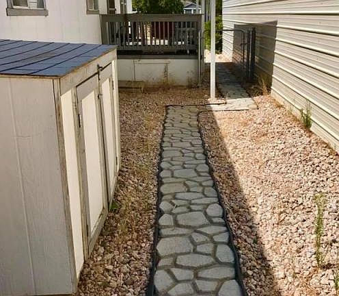 Beautiful double wide mobile in Whispering hills park. Covered carport fits 2 cars easily. Pergo flooring trough out living room, dining room, and hall way .Plenty of cabinets and counter space in the kitchen with a breakfast bar. Good sized laundry room off of kitchen area. Master bedroom has vaulted ceilings with a very spacious master bath. This is a very beautiful mobile home!! Community pool..