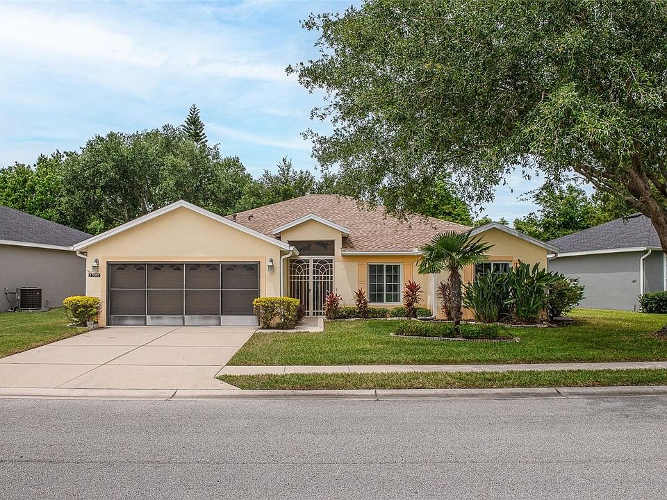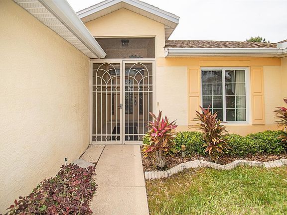 Originally a model, this one owner home in the well-kept gated community of Carillon Lakes offers 3 bedrooms, 2 baths and a Study/Den/Office that could be ideal to work at home. The Kitchen has Corian counters, and solid wood cabinets. When purchased, the owners installed a wooden wine rack, and additional wood cabinets to the ceiling in the kitchen, for more storage. The Master bath has a shower and separate tub with dual vanities and the Master bedroom has a walk-in closet with built in storage. The hall bath shared by the 2nd and 3rd bedroom has shower and tub. Most of the windows are double pane/impact resistant and a new roof was installed in 2020. The arched doorways and high ceilings add a nice touch, and there's a peaceful wooded view from the screened lanai with no backyard neighbors. Original worn carpet has been removed from the bedrooms and study, as a convenience to the new owners so they would have a blank canvas to install the flooring of their choice. All the other rooms have tile and/or vinyl. The interior utility room with access to the garage is equipped with a washer, dryer, additional storage and a utility sink. The garage door has been reinforced, there's a sliding screen door to allow air flow and a circuit was installed for an invisible yard fence for pets. Additionally, the garage has overhead storage, and attic access. This community is a convenient drive to I-4, shopping, dining and entertainment and has so much to offer. From this property it is a very short distance to the Community pool, Tennis Courts, Walking trails, Fitness center, Fishing and more. A transferrable home warranty is offered.