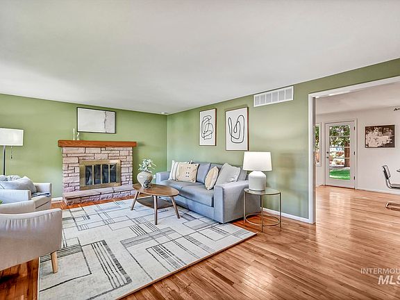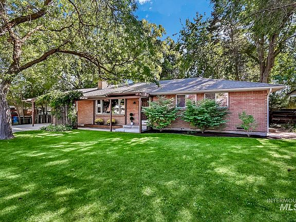 Beautiful single-level brick Mid-Century home on a tucked-away quiet street in Boise’s historic North End! With nearly ? of an acre, this lovely wooded lot just can’t be beat. A large wood deck, expansive fully fenced back yard, huge garden beds, a shed, + room for a shop, mean you’ll never want to leave! Both front & back yards have tons of mature trees & space for entertaining friends & family. Walk past the foliage-covered pergola & enter an inviting living area w/ample light, a cozy flagstone fireplace, & beautiful hardwood floors. Continue to an open dining area that flows into a terrific kitchen with granite tile counters, an island, & a convenient study/work nook. You can’t miss huge windows that ‘bring the outside in’ in true Mid-Century fashion & afford a view of the entire back yard. Three good-sized bedrooms & one full & one 1/2 bath top off the interior! The driveway affords tons of off-street parking + the garage & carport. Just a few blocks to Sunset Park or foothills trails for hiking & biking!