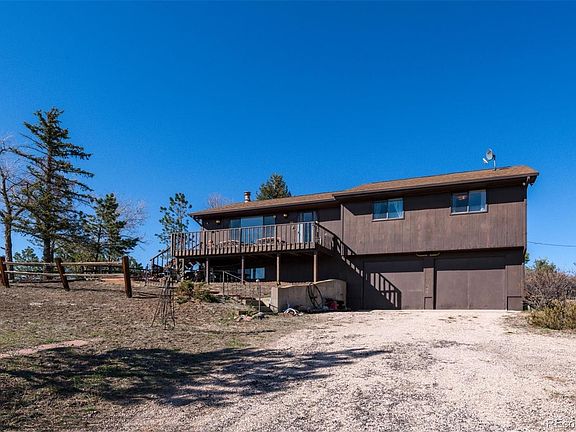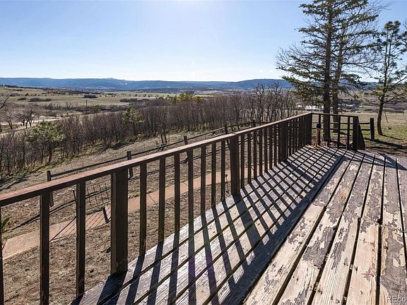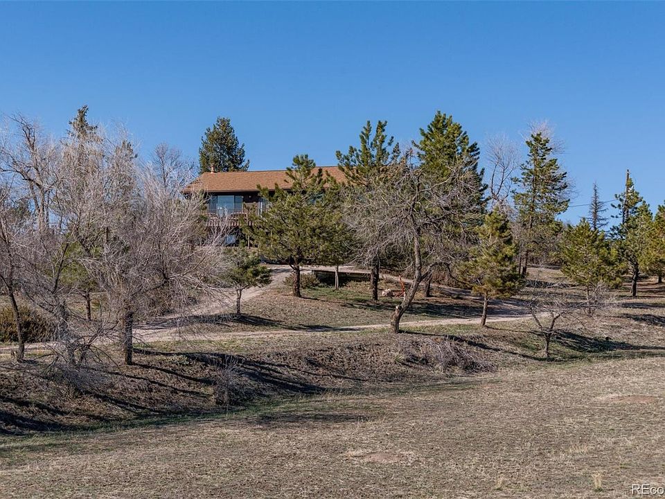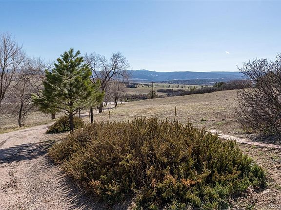 Step back in time and Enjoy this Rustic Ranch Style Home on 5.02 Acres*Spectacular Mountain Range Views*Tucked back off the Road, gives you great privacy*Trees and space to roam*The possibilities are endless*3 bedrooms on the main level, 2 additional bedrooms in the basement (one non-conforming)*Kitchen w/Bay Window,Cooktop,Refrigerator and door to Backyard*Dining Room*Living room with picturesque window*Walk out Finished basement*2 bedroom w/ adjoining walk in Closet*Laundry Room with Washer and Dryer included*Tractor and smaller Mowing tractor's are included*Just minutes from Castle Rock*Enjoy the Sunrises and Sunsets*Newer Well in 2013*Shed style outbuildings*2 car attached garage. You will feel right at home here. Horses Welcome*