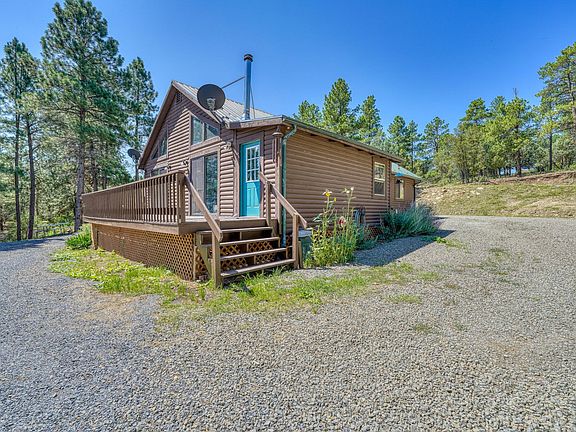 A peacefully sublime 35 acre property awaits you at 6,900 feet with a charming 1,200+ square foot home just 15 minutes outside Trinidad, Colorado!2 bedrooms, a full bathroom, bonus laundry room/office, living/great room with vaulted ceiling, custom rock wall, stove, kitchen and a raised deck are all on one level making for a comfortable living space tucked in the tall pines well off the ranch access road for extra privacy.Great views of Fishers Peak and the new State Park! ATV/hiking trail from the house does a meandering loop through the woods. Lower portion of this corner parcel features iconic rock boulders, grassy meadows and a heavily wooded valley with game trails throughout.Water tap, cistern, septic system, electric and propane are all in place. All appliances included and priced to sell!