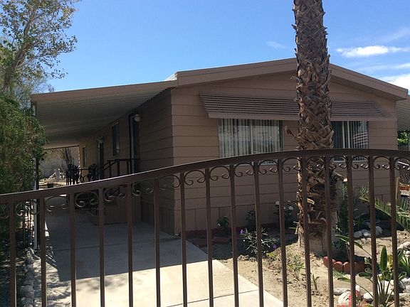 Upscale, immaculate, affordable home in Tri Palms (55+) community. Turnkey! This home is fully furnished & has many upgrades. NEW paint inside & out; NEW insulation in roof; NEW wood floors; NEW rod iron gate for privacy; NEW plants in front & side yards; RV parking possible on side; storage shed; central a/c; large backyard. 4 lemon trees, fig tree, 2 olive trees, 4 orchid trees 5 date palm trees. Low HOA includes unlimited golf, 2 swimming pools, spas, tennis, clubhouse, restaurant & much more. Just bring your personal belongings and start living. It's all here for you!!