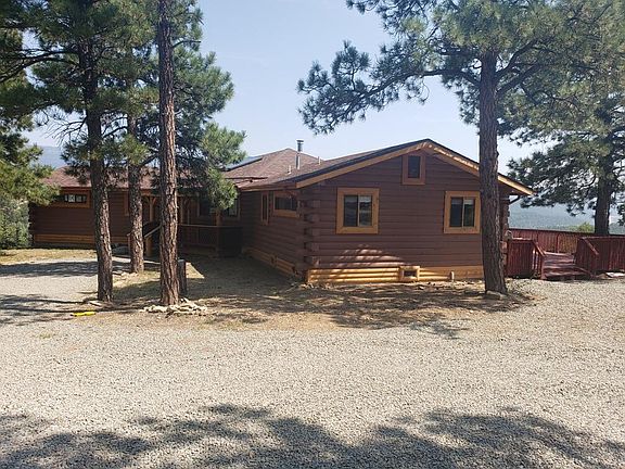 Tucked in the tall pines off a dead end spur road is where you'll find this custom 2 bedroom/2 bath 1,900+ sq. ft log home. The moment you walk in from the covered front porch you'll be greeted by the open kitchen and living room with vaulted tongue and groove ceilings, skylights, a wood burning stove and massive wood timbers. Picture windows and sliding glass doors are all perfectly placed to take advantage of the panoramic view of Fishers Peak. Brand new ceramic and vinyl plank flooring, counter tops and sinks. New tiled guest shower. New appliances, forced air heat and AC with built in humidifier. Newer roof and sky lights. 4 updated sliding glass doors provide access to the large back deck from either bedroom or from the great room. Short drive to Trinidad and ready for YOU!