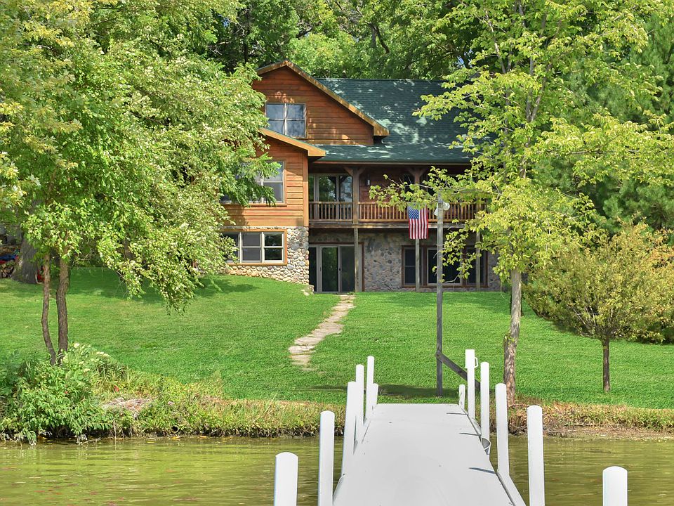 Absolutely stunning 4 bedroom Log Lake Home on Bohners Lake! Step into your lake retreat and view the glistening water from almost every room. Soaring beamed ceilings in the great room has a floor to ceiling stone fireplace used for those blistering winter days. The open concept kitchen offers everything needed for entertaining while you cook, and a four season room sits overlooking the lake where you can relax with a book or two. Upstairs is a spacious master bedroom and the main floor offers 2 bedrooms as well. The walk out LL has a game room, recreation area and full bath with another bedroom. The 66 feet of prime frontage will give you sunset views found on postcards.