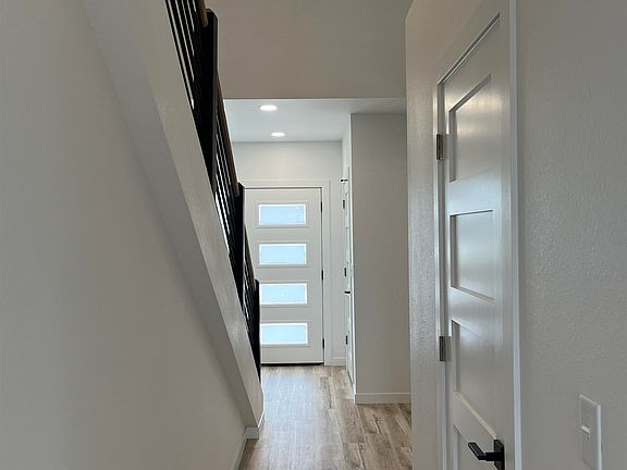 Newly constructed townhome. Solid core wood doors and trim, luxury vinyl flooring, quartz counter tops, and modern fixtures throughout.  Master bedroom has a grand closet, full bath en suite with dual sinks, and quartz countertop. A separate loft/ office space is located off the back of the master bedroom. Laundry is conveniently located among the bedrooms on the upper level. The second full bath has a double sink with quartz countertop and black plumbing finishes. Kitchen has a large quartz island and countertops, extra tall cabinets and pantry. Dining and living room are open concept with great natural light. A half bathroom conveniently located on the main level. Basement offers the option for a 4th bedroom and is plumbed for a 4th bathroom.  Grass will be hydro seeded as weather permits.   Furnace is gas, and the water heater, range, and washer and dryer are electric currently, but seller has plumbed gas lines to both the range and dryer if gas is preferred. Heated and insulated garage. Home is also stubbed for sprinkler system. 1 year builder warranty.