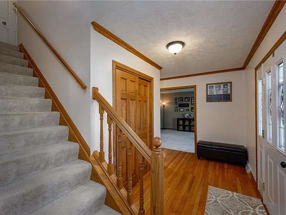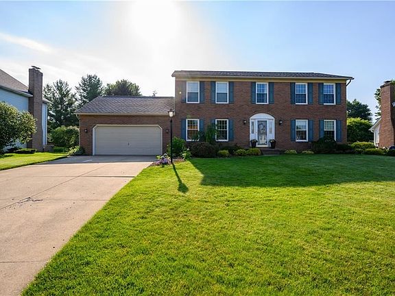 Call or Text listing agent Darcy Friel at 330.324.2264 for a private showing. Well-built Brookshire Hills center-hall colonial sits on a cul-de-sac with mature pine trees along the back lot line that give privacy to the vinyl fenced backyard. Inviting foyer entry with hardwood floors, crown moldings, and an open circular floorplan. Spacious kitchen with tile floors, recessed lighting, center island, Corian countertops, tile backsplash, and double doors out to the engineered Trex deck. The kitchen opens to the great room with vaulted ceilings, brick gas fireplace, brick ledge for additional seating, and a second door out to the deck. This home is set up for entertaining! Fantastic finished lower level has enough space for toys and a perfect countertop wood ledge for additional seating for those big games. Upstairs the master suite has both a double closet and a walk-in closet. There are double sinks, a walk-in shower, soaking tub and a skylight for natural lighting. The additional bedrooms all have double closets and ceiling fans. This home has neutral decor and plenty of space. It's easy to feel at home!